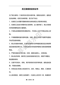 員工宿舍安全協(xié)議書